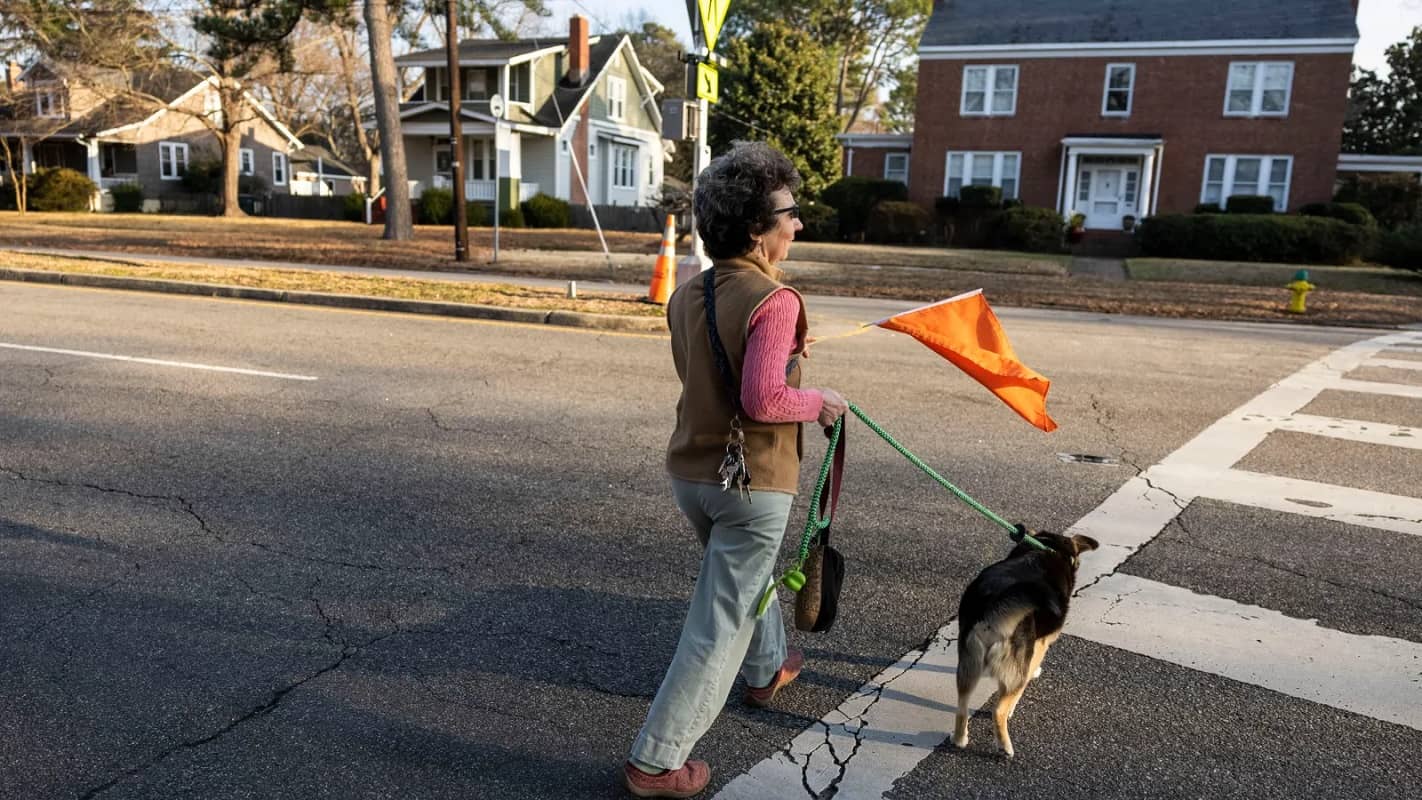 Luôn đi bộ hướng về phía dòng xe ngược chiều khi không có vỉa hè, giữ cho chó của bạn ở phía xa nhất so với các phương tiện. Tránh sử dụng điện thoại vì nó có thể khiến bạn không nhận thấy những mối nguy hiểm đang đến gần. Tại các ngã tư, hãy giao tiếp bằng mắt với người lái xe để đảm bảo họ đã nhìn thấy bạn trước khi băng qua.